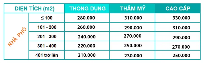 + Đơn giá trên áp dụng cho các công trình nhà phố, biệt thự, căn hộ. Đối với công trình văn phòng, kho, xưởng sẽ báo giá trực tiếp theo quy mô.